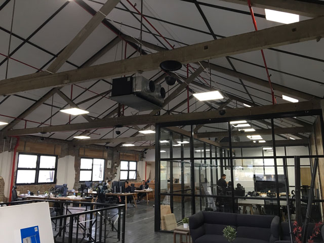 However, where there is a warehouse or other minimalist fit out, adding physical acoustic treatments ruins the aesthetics of the space. In the case of weploy, the warehouse aesthetic and minimalist glass sheet design of the offices would be compromised.